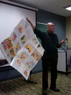 Rave reviews from all who attended. I must agree - he was very entertaining, had us laughing and singing and chanting along with him and was the perfect "shot in the arm" for my students who are elementary teachers. They appreciated his love of picture books and the fun way in which he shared them and highlighted many ways to use them that would be engaging to children. One teacher told him, "I don't know you, but I know you now through your books."